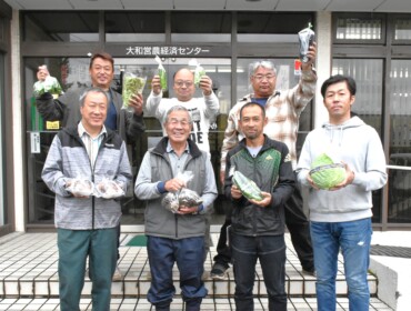 神奈川県海老名市で栽培するレタス。早朝に収穫し、その日にスーパーの店頭に並びます。販売促進にも力を入れ、食べ方の提案もしています。