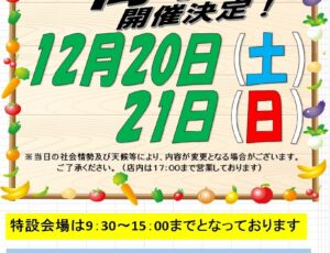 12月に入り大分冷え込む日が続いてきました。皆様如何お過ごしでしょうか? 大変お待たせいたしました!!先日一度告知いたしましたが詳細が決まりましたので再度、ご案内させていただきます(^^♪ 藤沢店では久しぶりの野菜の詰 […]