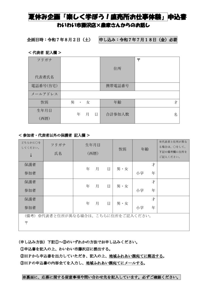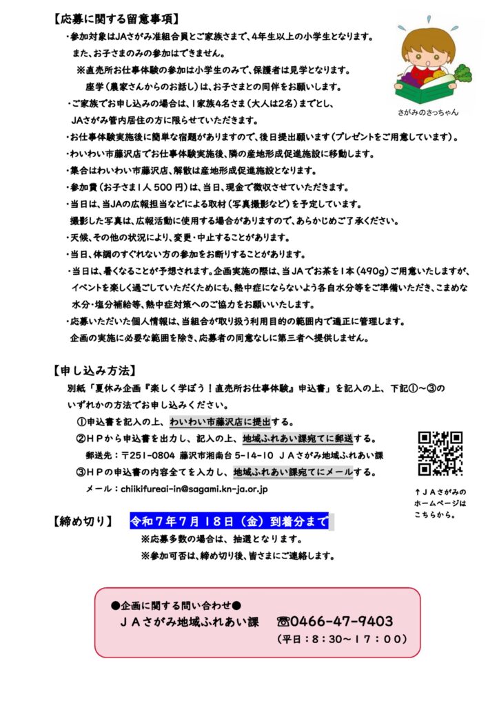 准組合員向け夏休み企画「楽しく学ぼう!直売所お仕事体験」わいわい市藤沢店✕農家さんからのお話し:令和7年8月2日(土)