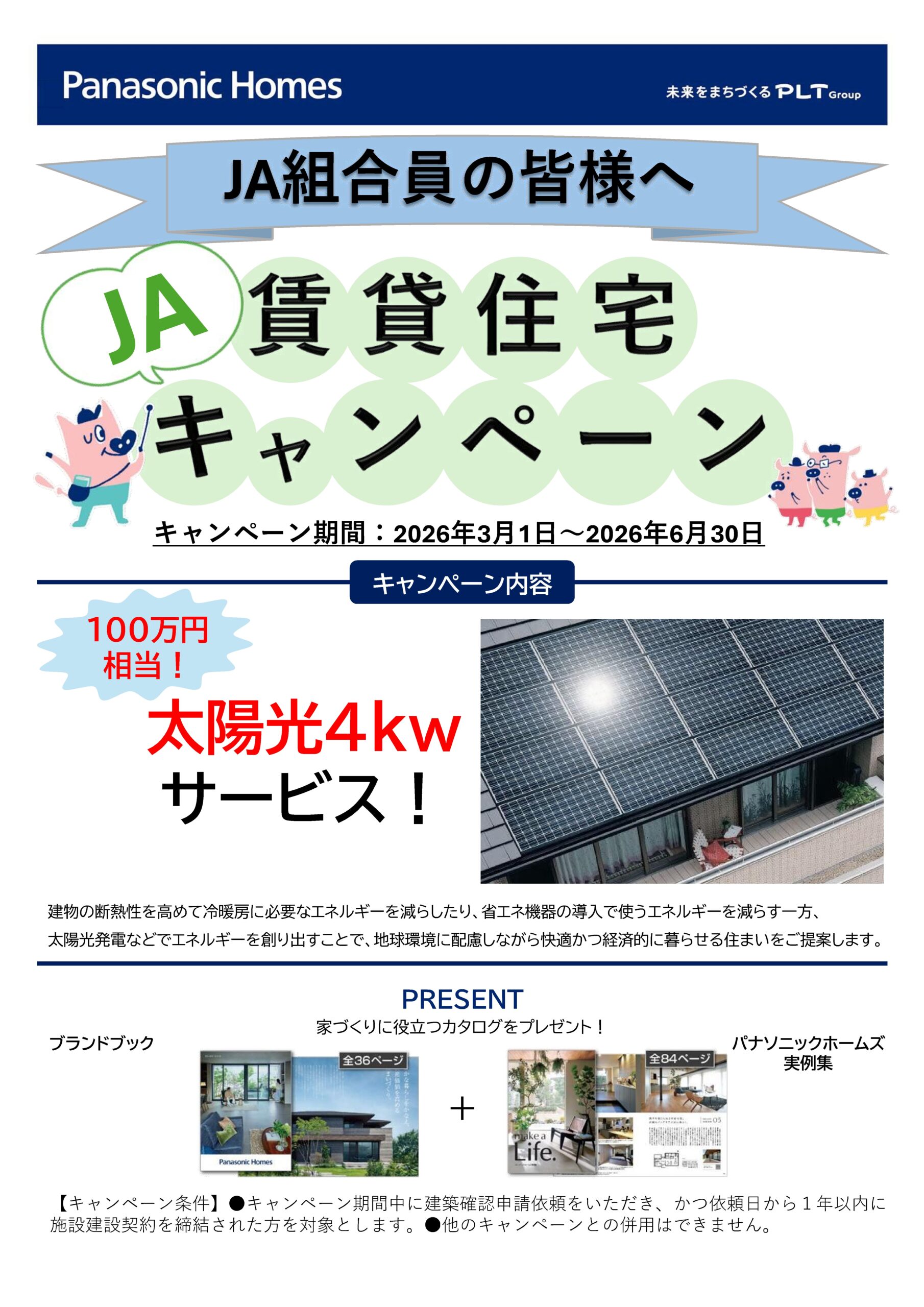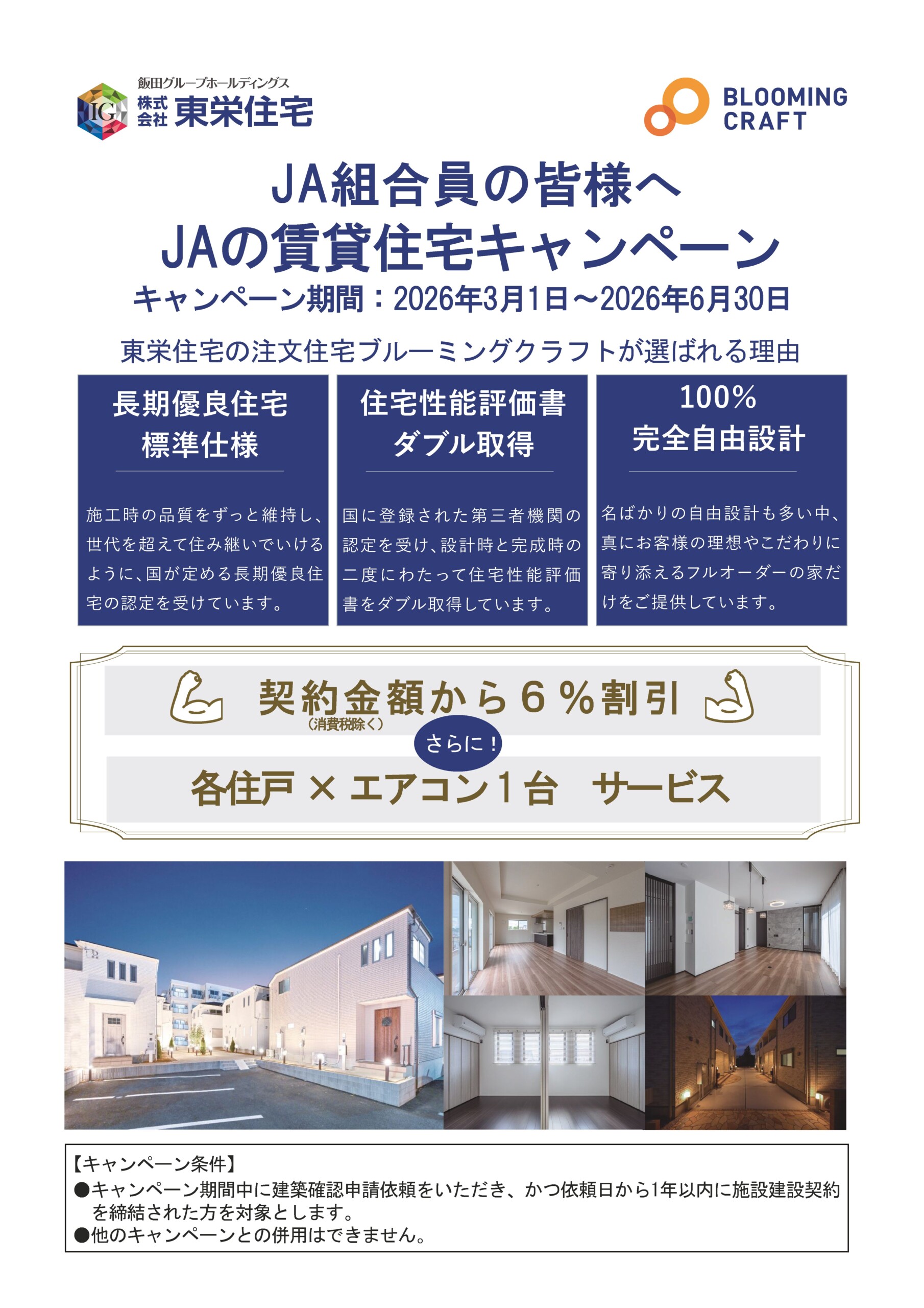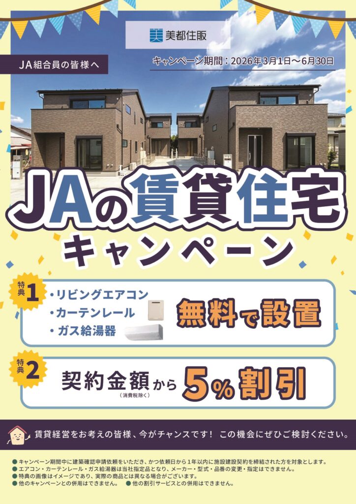 JA組合員様へ 特典ありの賃貸住宅キャンペーンです! 対象メーカー: