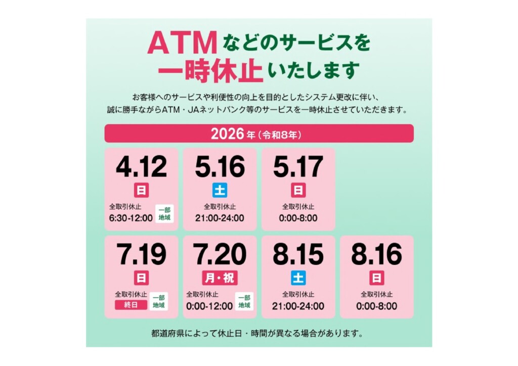 ATMなど一時利用停止について