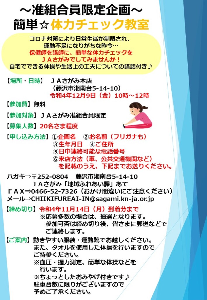 ~准組合員限定企画~簡単☆体力チェック教室