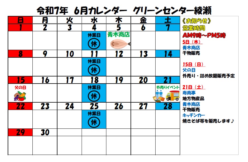 さて、お待たせいたしました!6月のイベントカレンダーを掲載いたします。