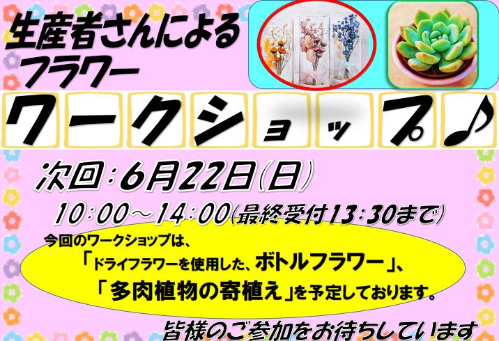 今週の日曜日はフラワーワークショップを開催いたします!夏の期間はお休みとなりますので、次回は秋の予定となります🍂