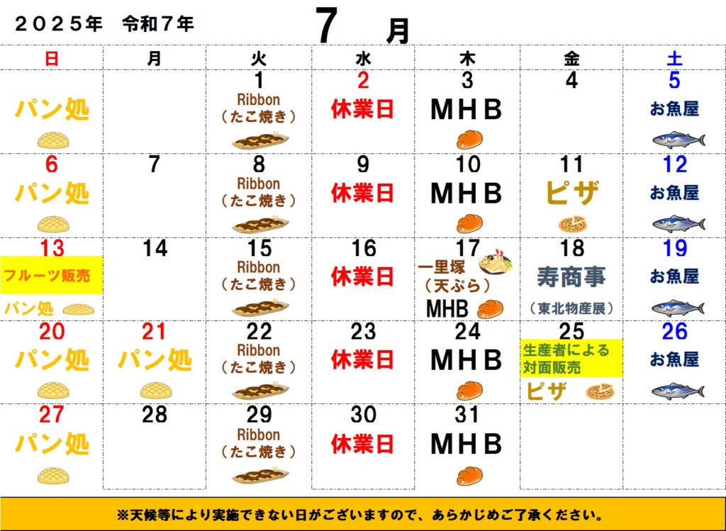 7月出店カレンダー 【わいわい市寒川店】