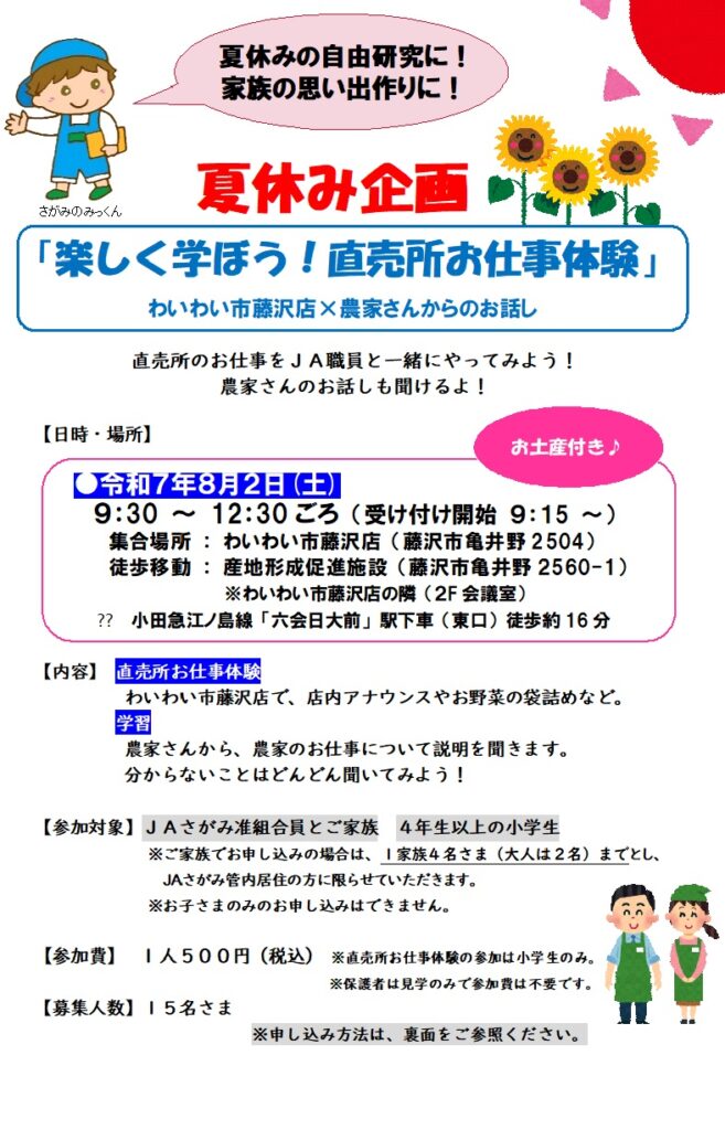 わいわい市藤沢店では、夏休みの特別な体験を計画中!