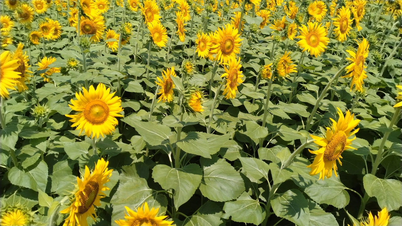 私たちの身長よりはるかに高いひまわりが一面に広がっています!