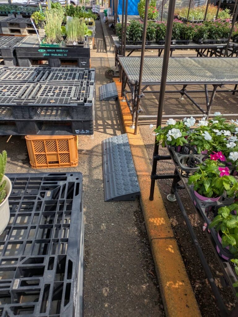 また、店舗外園芸コーナーでは傾斜スロープを設置しました!足が引っかかってしまうことが多々ありましたが、少しは効果があることを願います・・・。