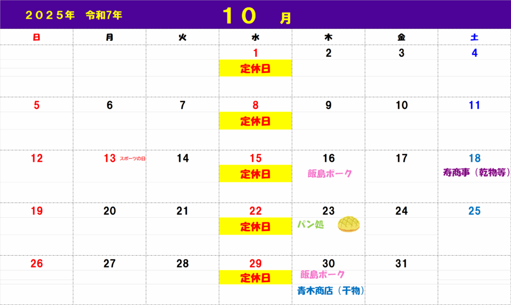 【グリーンセンター綾瀬】10月 出店カレンダー