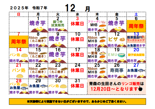 12月出店カレンダー【わいわい市寒川店】