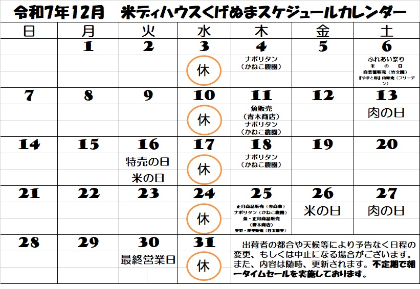 米ディハウスくげぬまイベントカレンダー(11月分)