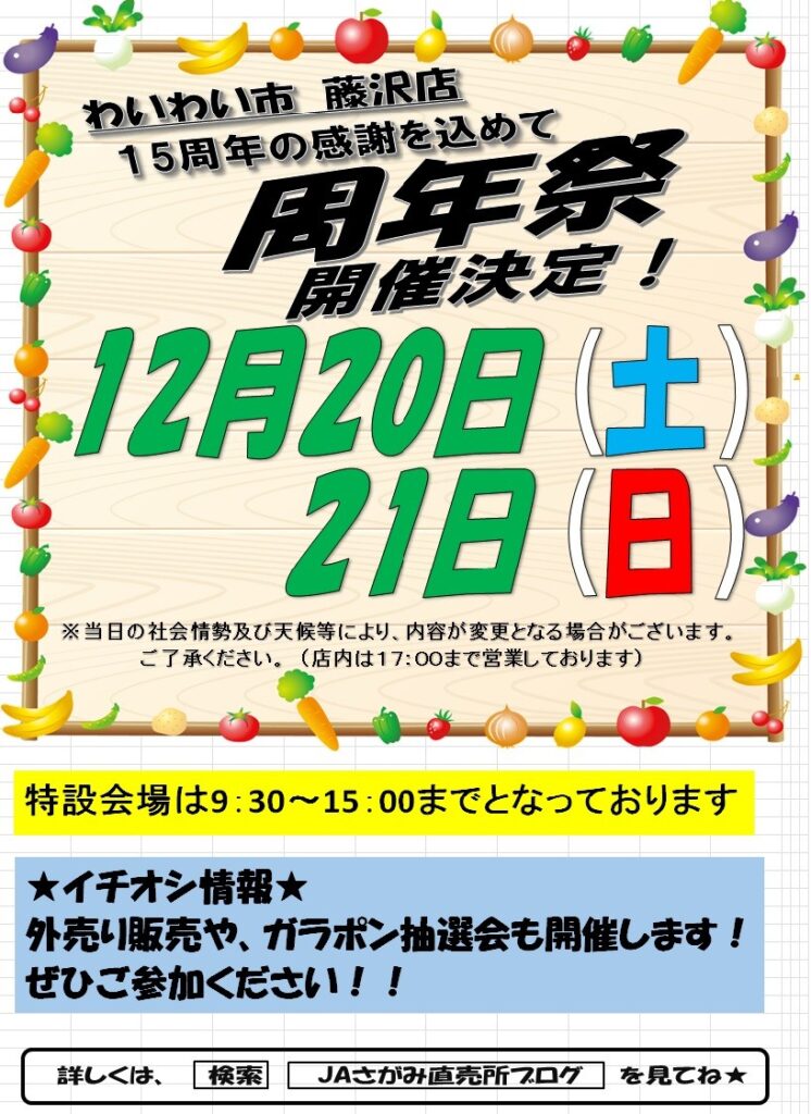 わいわい市藤沢店15周年祭のご案内(^^)/