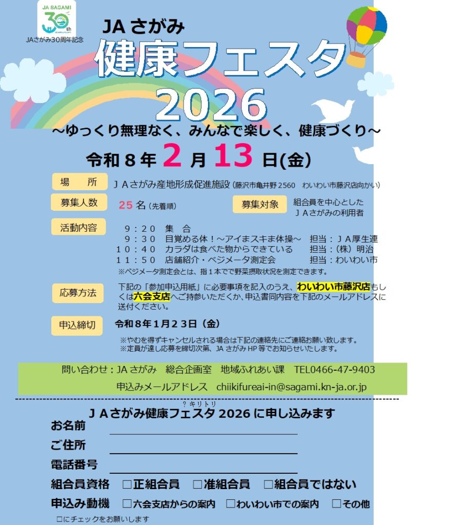 来月2/13(金)に当店で健康フェスタを行います。毎月行っているべジスコア測定会も同時開催しますので、ぜひご参加ください!!
