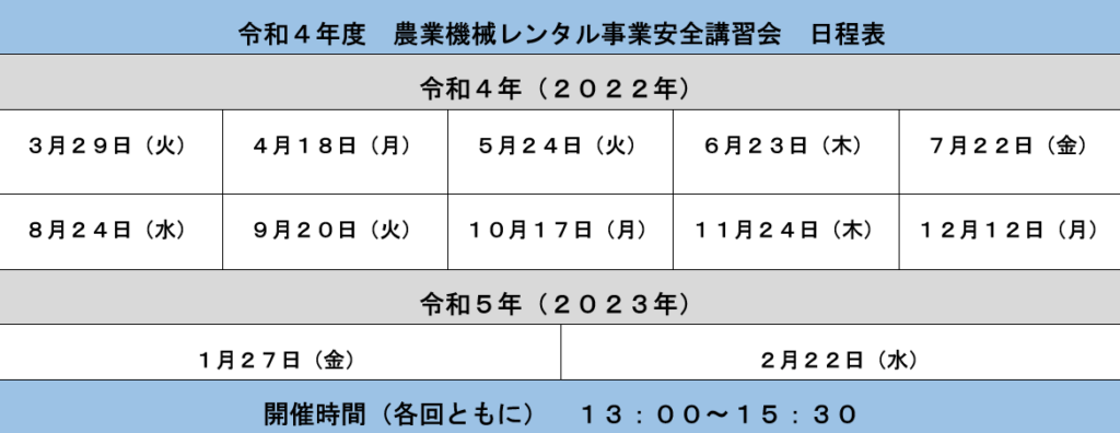 農業機械レンタル事業安全講習会の内容はこちら