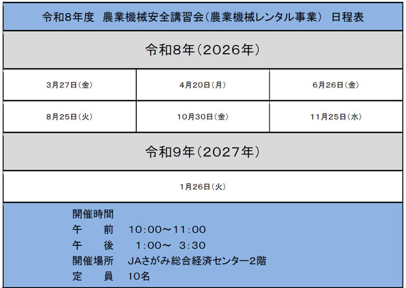 農業機械レンタル事業を利用される方は受講が必須となります。