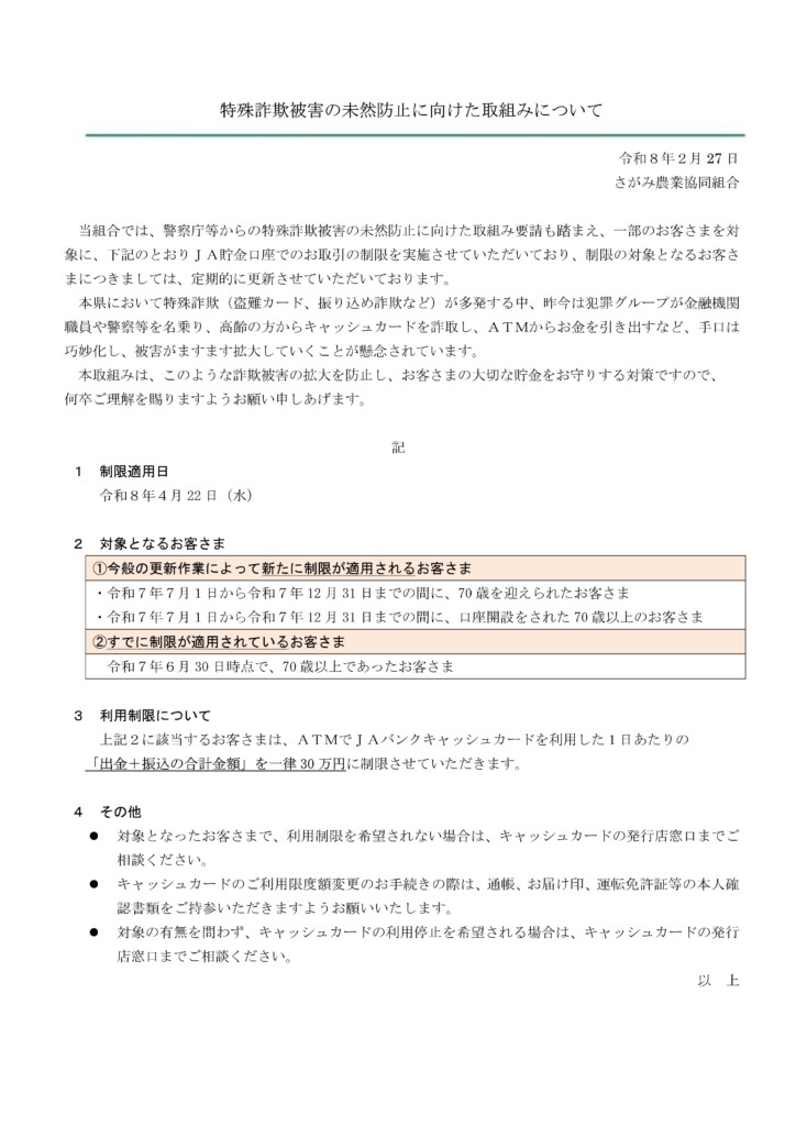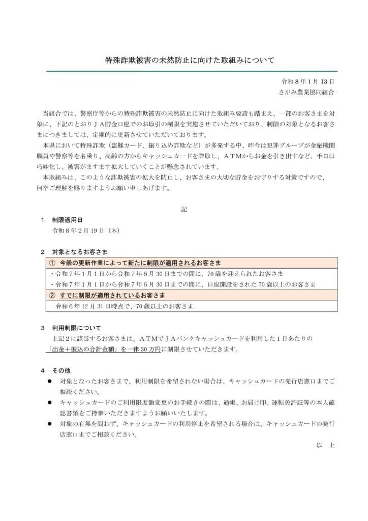 特殊詐欺被害の未然防止に向けた当組合の取組みについて